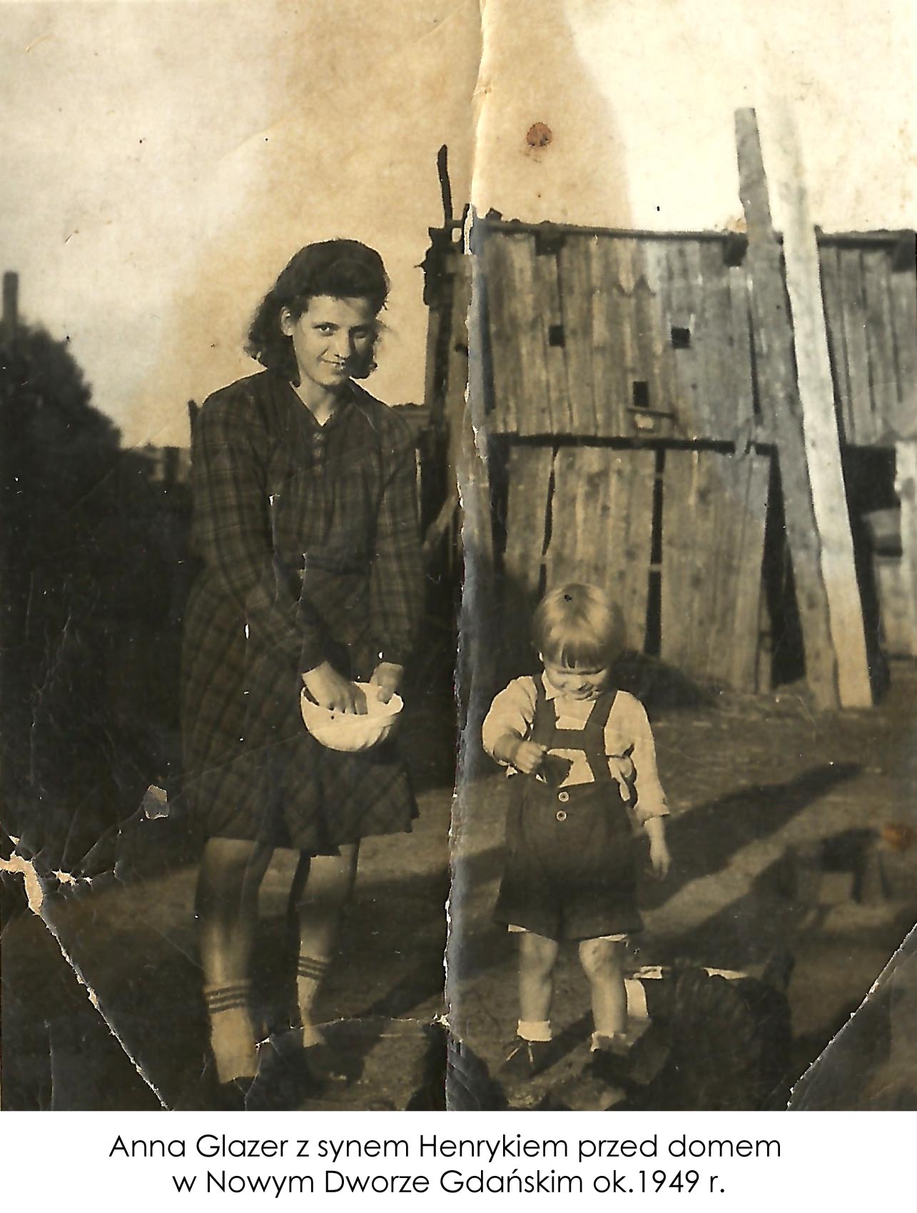 AG: Bo to rudera była i nie chcieli nam go dać. Mówili, że do rozbiórki, bo to już rozebrali na wpół ten dom, a on się tam w prezydium naprzykrzał, chodził, chodził parę tygodni, na ostatku powiedzieli „już to weź”. I on sam wszystko w domu robił. Ja przyjechała po miesiącu z synem Heńkiem. On miał już 3 lata, w 1945 się urodził.