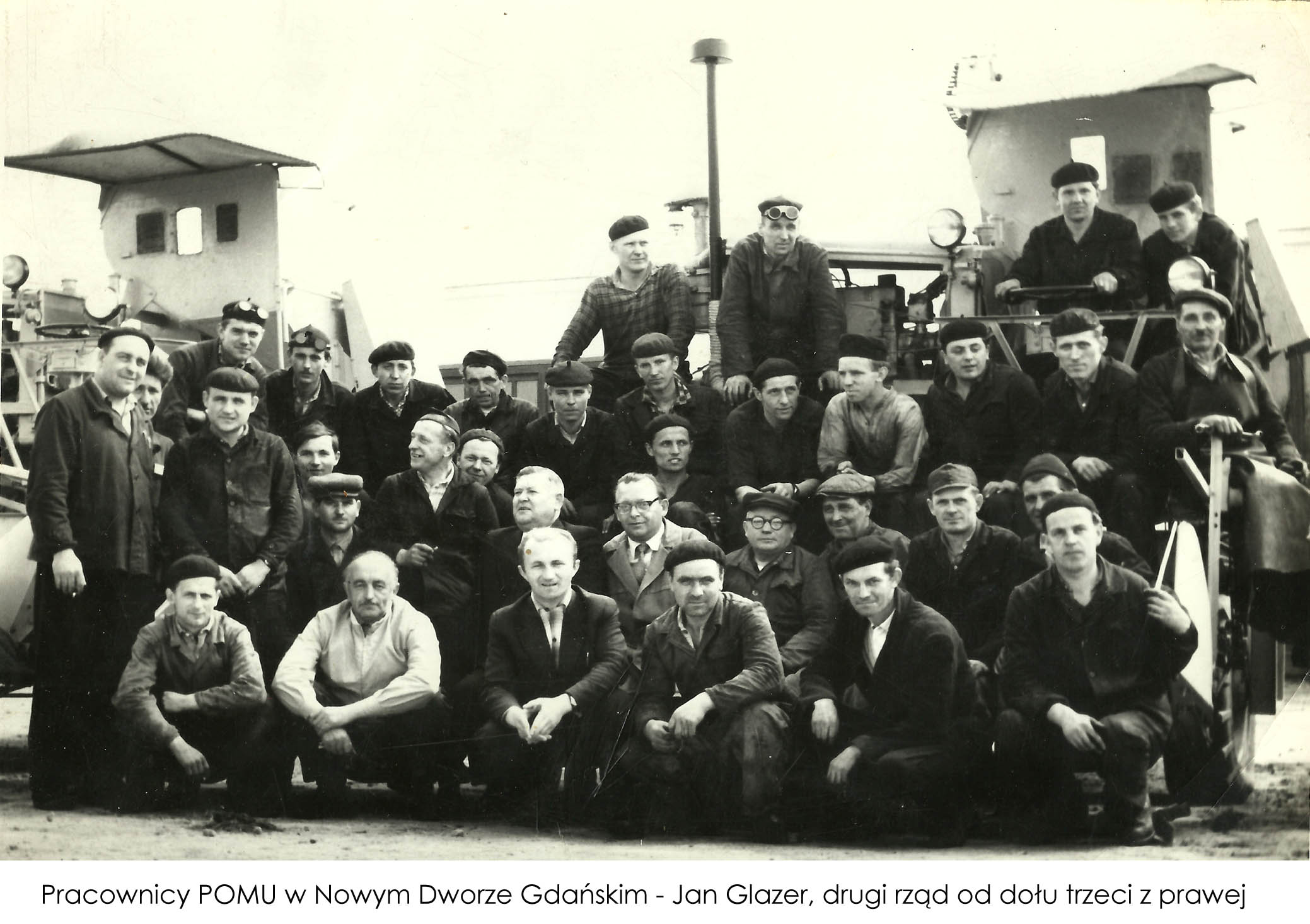 AG: On tu, na zdjęciu, ten najładniejszy. To jest już zdjęcie z niewoli. Do wojska poszedł w 1937 i za dwa lata wojna wybuchła. Był na Helu i stamtąd do niewoli poszedł. Ja go poznała dopiero po wojnie. (Jan Glazer trafił najprawdopodobniej do miejscowości Lukenwarde, później pracował w fabryce włókienniczej. Ponieważ był przedwojennym rzemieślnikiem, potrafił naprawić różne rzeczy, więc nie żyło mu się źle, był ceniony za swoje umiejętności. Nie przebywał w zamknięciu, mieszkał poza miejscem pracy, w miasteczku. W widocznym miejscu nosił naszytą literkę P, by było wiadomo, że jest Polakiem, więźniem.)