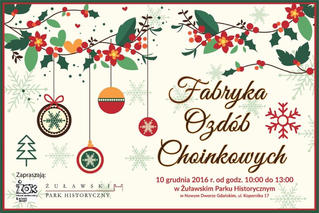 Żuławski Ośrodek Kultury i Żuławski Park Historyczny tradycyjnie zapraszają całe rodziny do wspólnego tworzenia ozdób choinkowych 10 grudnia 2016 r. (sobota) od godz. 10:00 do 13:00 w sali dwukolumnowej Żuławskiego Parku Historycznego. W świątecznym nastroju, podśpiewując kolędy będziemy piec pachnące pierniki i pokażemy Wam jakie choinkowe cudeńka można stworzyć łącząc pospolite materiały z odrobiną fantazji i kreatywności.