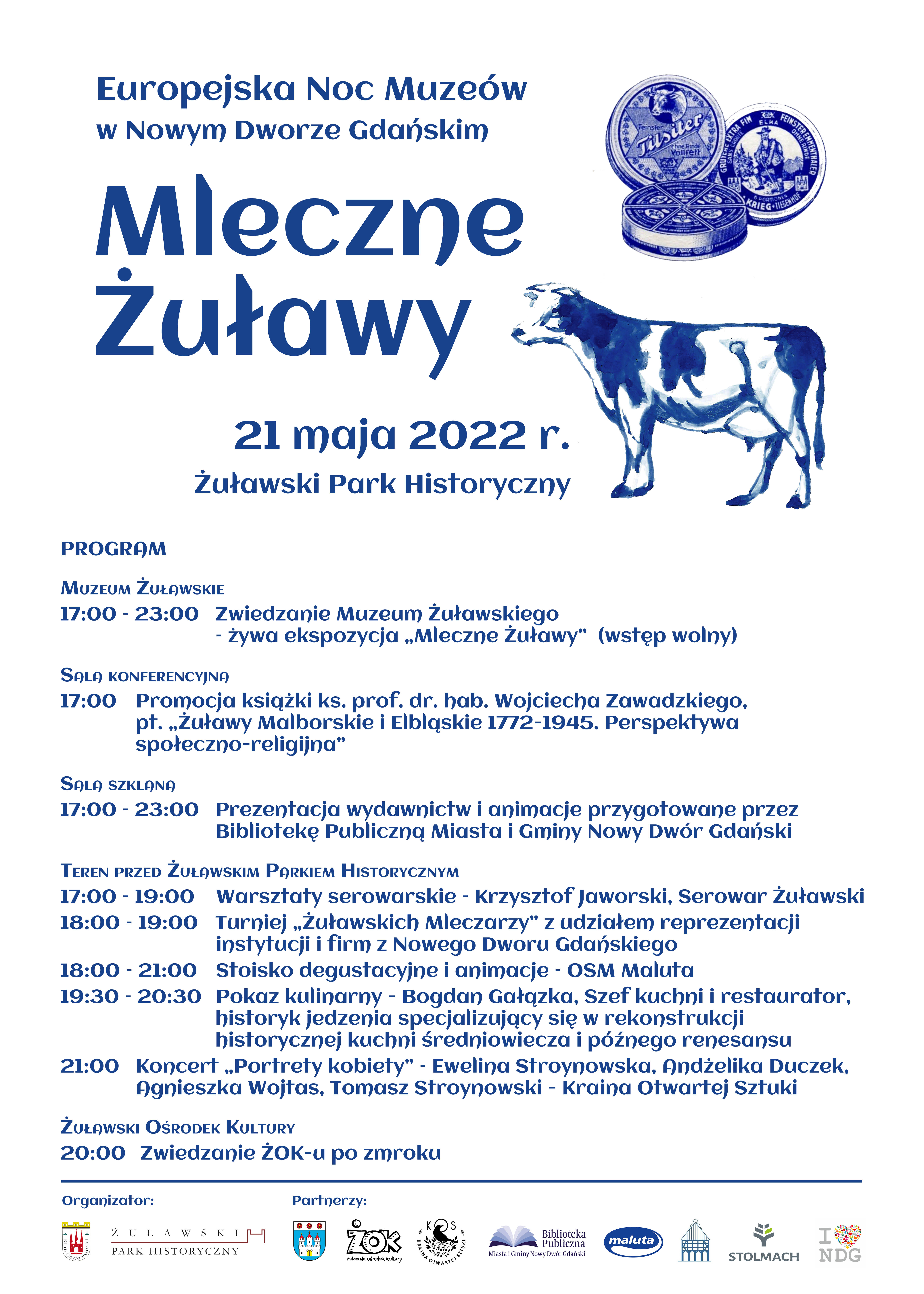 W sobotę 21 maja 2022 roku zapraszamy na kolejną odsłonę Europejskiej Nocy Muzeów w Żuławskim Parku Historycznym. Tym razem tematem przewodnim święta muzeum będą „Mleczne Żuławy”.