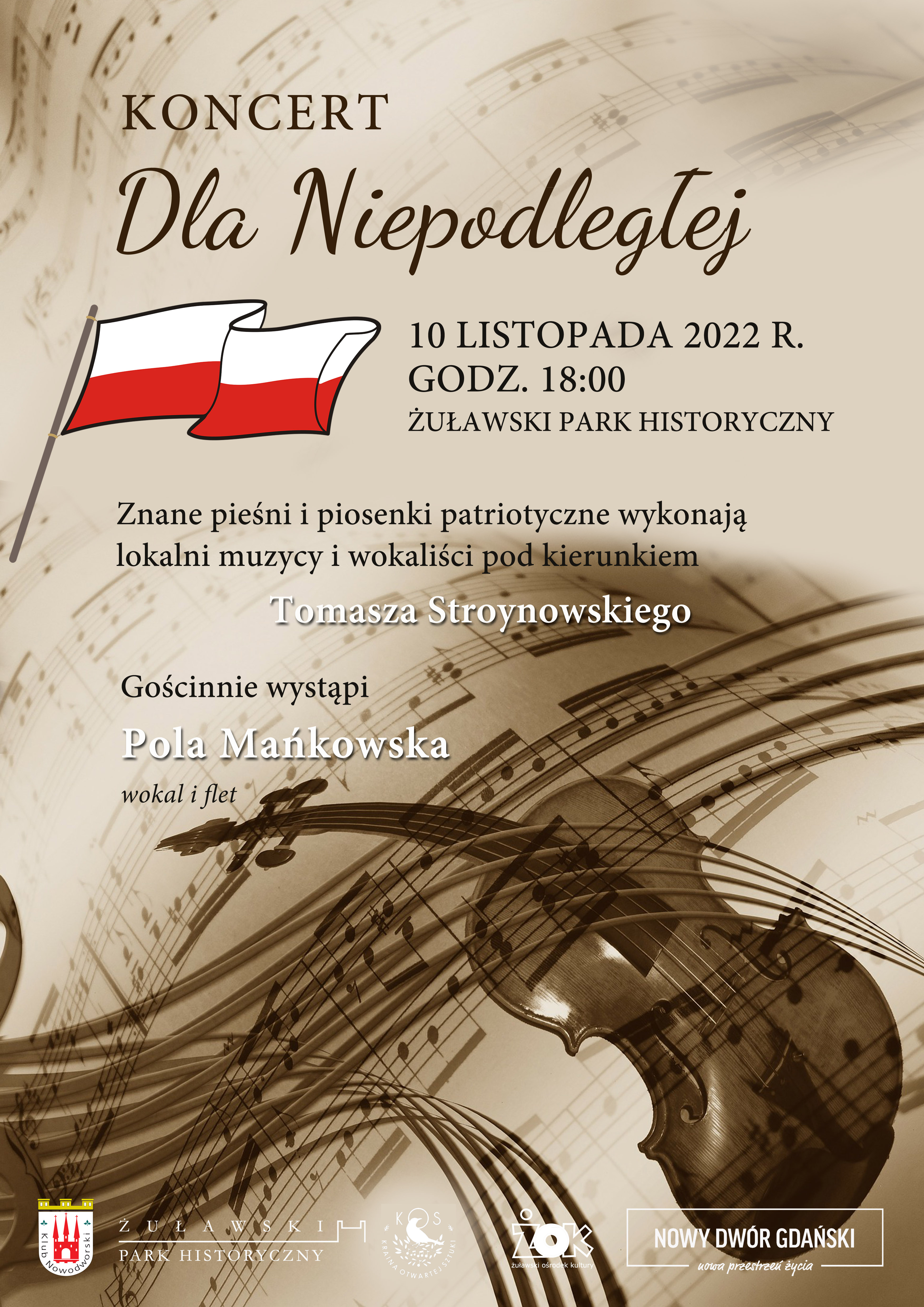 10 listopada 2022r. zapraszamy do Żuławskiego Parku Historycznego na koncert „Dla Niepodległej”. W trakcie wydarzenia wystąpią lokalni muzycy pod kierunkiem Tomasza Stroynowskiego. Początek o godz. 18:00.