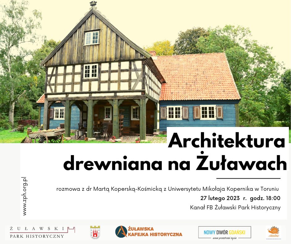 Czy dom podcieniowy to dom mennonicki? Jak wyglądają zagrody olenderskie? To tylko dwa pytania, jakie na pewno padną podczas najbliższej Żuławskiej Kafejki Historycznej. 27lutego o godz. 18:00 z dr Marta Koperska-Koścmiką z Uniwersytetu Mikołaja Kopernika w Toruniu będziemy rozmawiać o zabytkowej architekturze drewnianej.