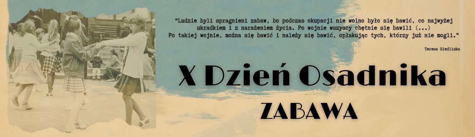 Tematem przewodnim tegorocznej edycji jest ZABAWA. Po traumie wojny, mierząc się z niewyobrażalnym trudem budowania tu życia na nowo, nasi przodkowie cenili wspólne spędzanie czasu, śpiewanie, potańcówki, dziecięce zabawy. Te małe chwile radości dawały wytchnienie i nadzieję na lepsze jutro. Dlatego też w tym roku dołączy do nas Teatr Wagabunda z zabawami ze starej zagrody, a do wspólnego śpiewania zaprosi tradycyjnie - Kapela Osadnicza.