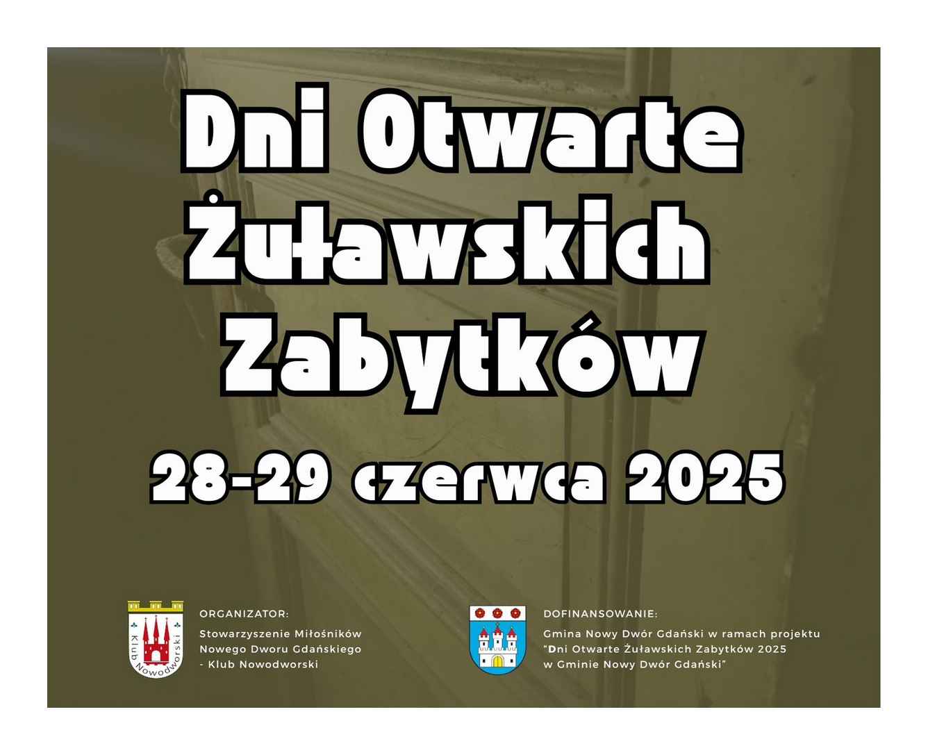 Dołączcie do nas podczas Dni Otwartych Żuławskich Zabytków! 28 – 29 czerwca 2025. Jesteście właścicielem zabytkowego obiektu? Doskonale opowiadacie o historii Waszej małej ojczyzny i chcecie się podzielić tą wiedzą z innymi? Dołączcie do Nas podczas tegorocznej edycji Dni Otwartych Żuławskich Zabytków!