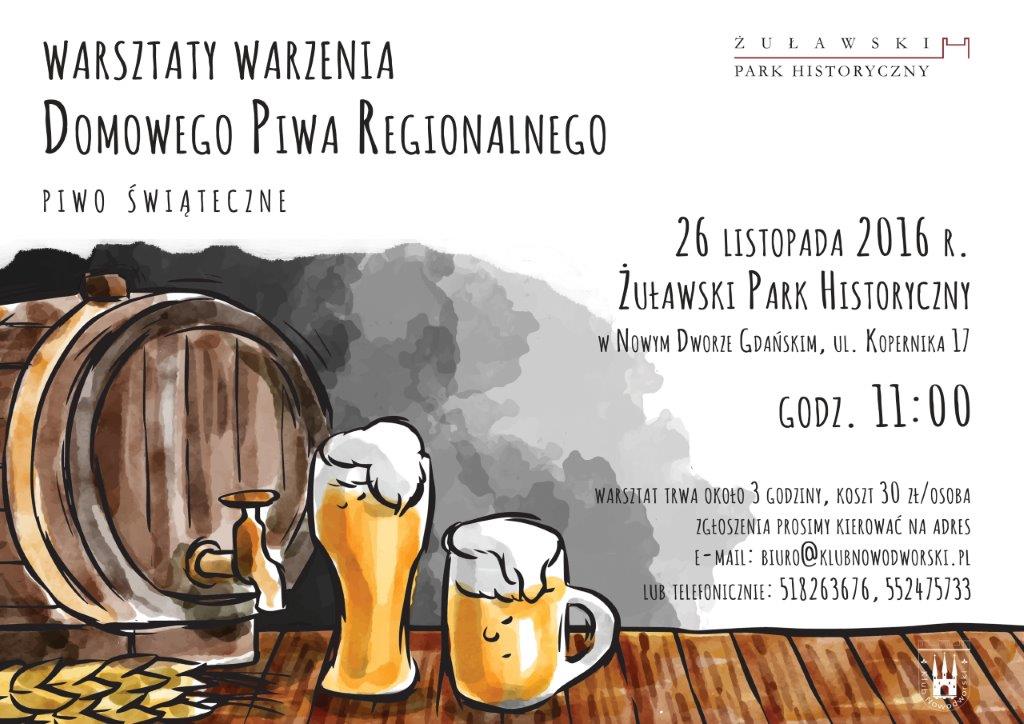 Warsztaty warzenia świątecznego piwa o korzennym aromacie, zapachu cynamonu z nutą kardamonu, rozpoczną się o godzinie 11.00. W trakcie trzech godzin uczestnicy zajęć poznają tajniki warzenia piwa, przejdą wszystkie etapy przygotowania trunku pod czujnym okiem piwowara Artura Wasielewskiego. Koszt warsztatów: 30 zł. Zgłoszenia prosimy kierować na adres: biuro@klubnowodworski.pl lub nr telefonu: 518263676, 552475733.